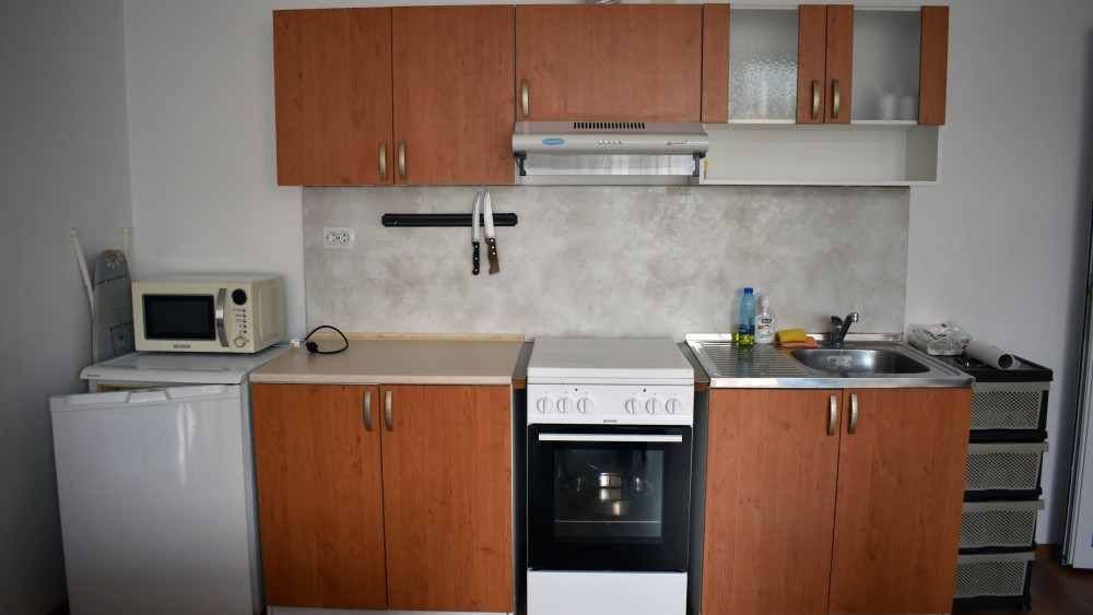 Сградата се намира недалеч от градския парк. Апартаментът се намира на първи етаж, с изцяло южно изложение. Състои се от коридор, баня с тоалетна, голяма всекидневна с кухенски кът и спалня. В имота има и складово помещение, което се ползва като перално помещение, там се намира и бойлер. Към апартамента има и мазе.