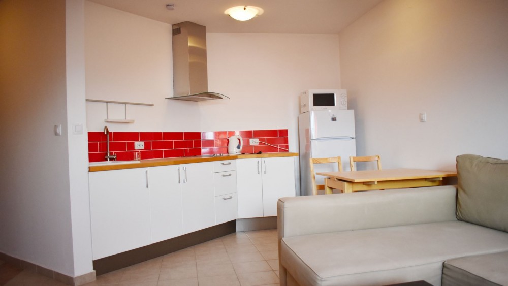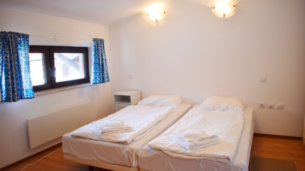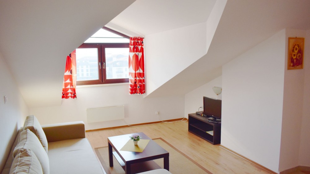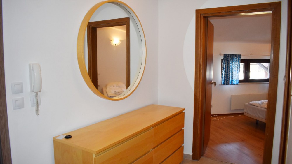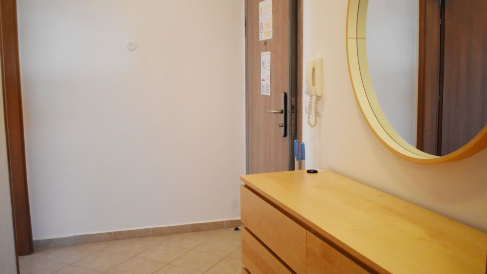 2 легла и гардероб в спалнята. Към апартамента има склад. Срещу допълнително заплащане може да се закупи и парко-място в покрития паркинг на комплекса.