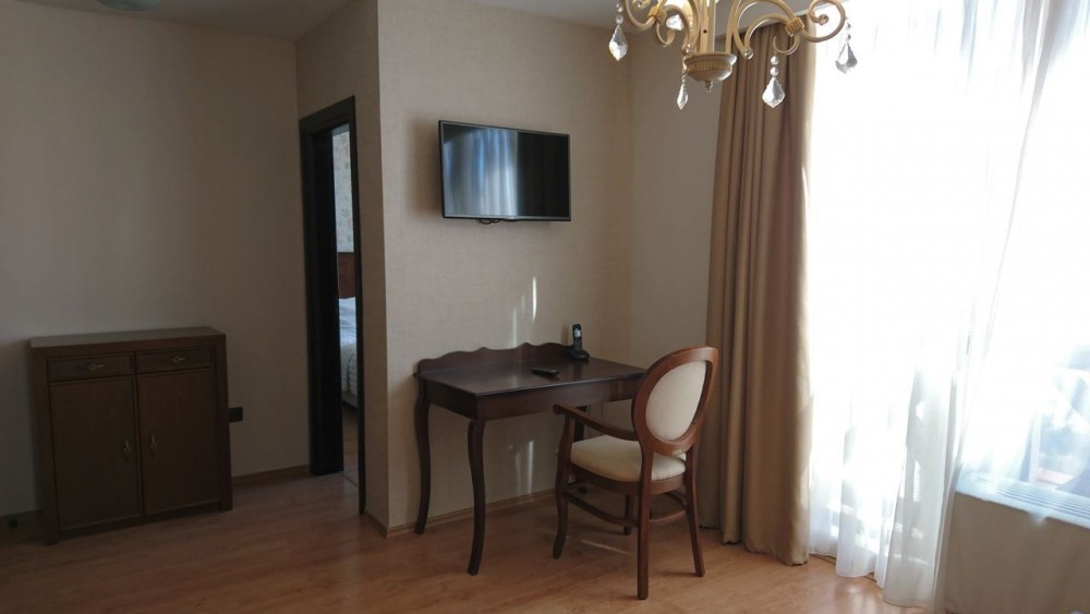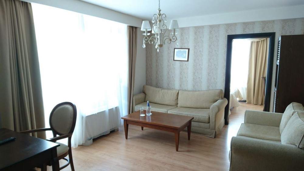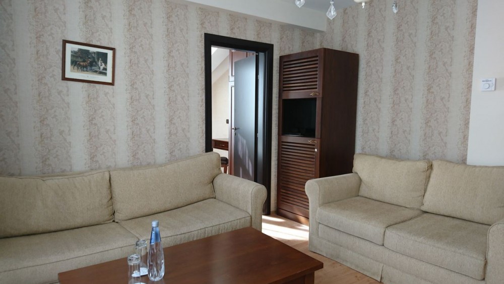 Апартаментът се състои от: просторна всекидневна с изискана мека мебел, работно бюро и портманто; две отделни спални, едната от които със самостоятелна баня; втора обща баня с вана и тоалетна.