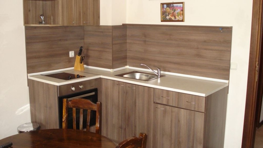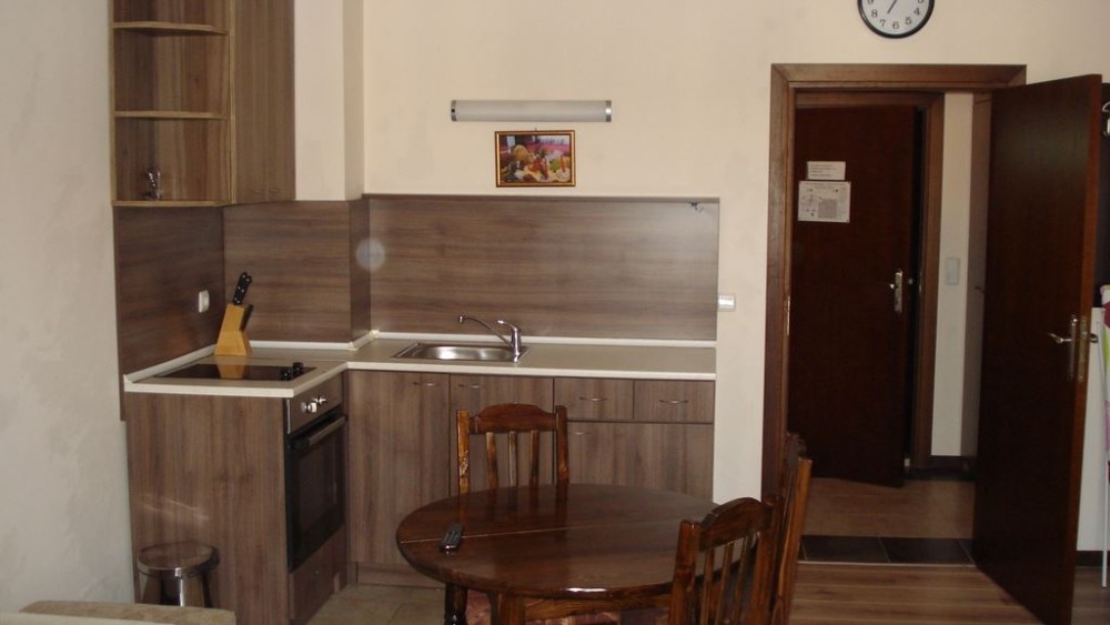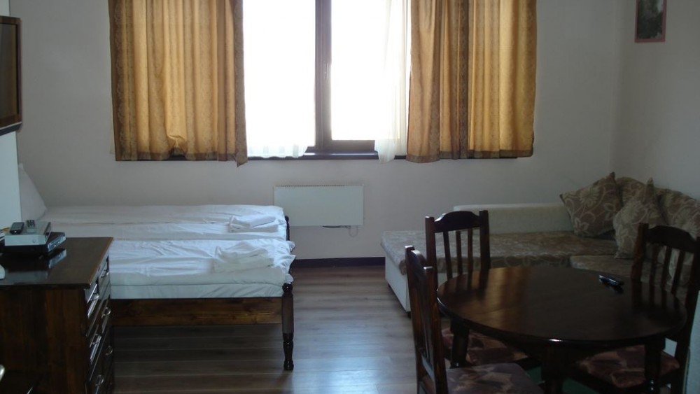 Апартаментът се състои от коридор; баня; голяма стая с две отделни легла, кухня и трапезария.