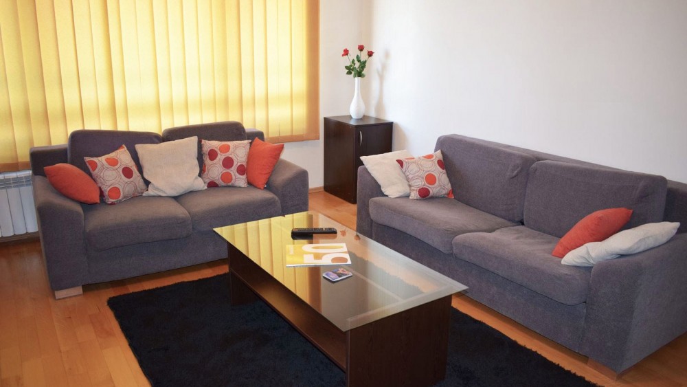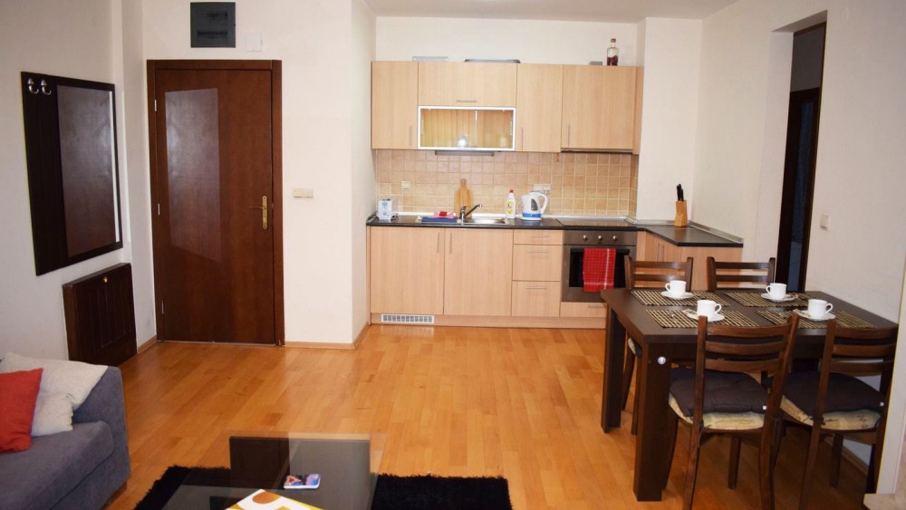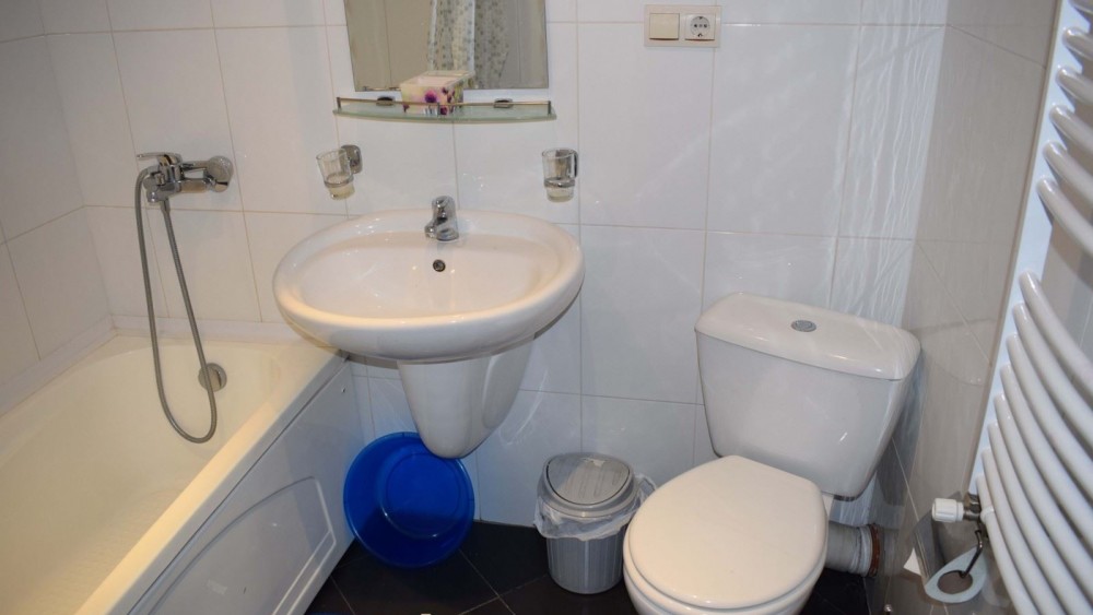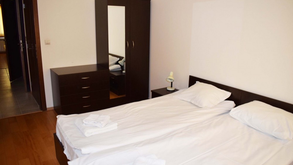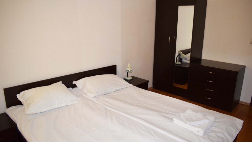 bedrooms, two bathrooms. One of the bathrooms has a bath. There is a