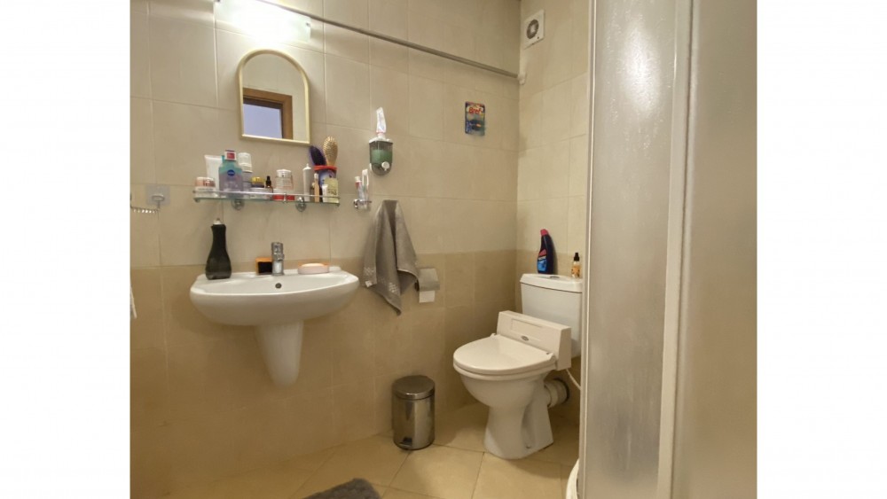 There is a laundry room with a washing machine and boiler, and the bathroom has a shower.