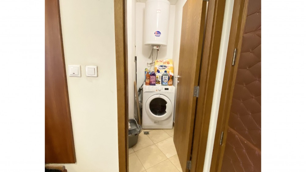Both rooms have access to a balcony, east-south exposure. There is a laundry room with a washing machine and boiler, and the bathroom is finished with a shower.