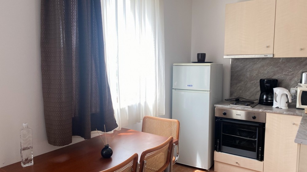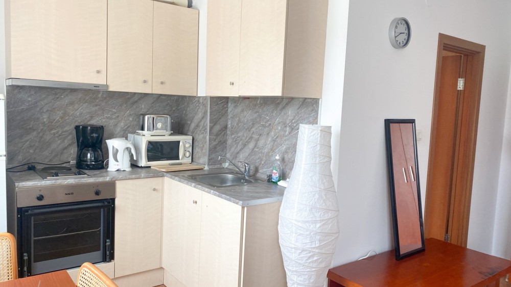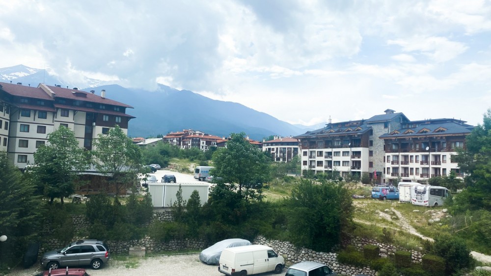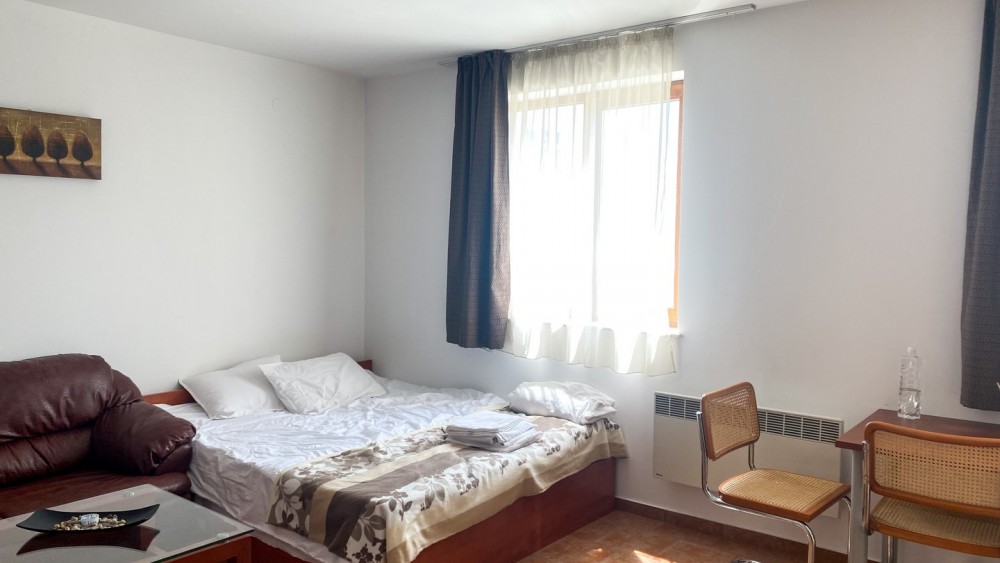 The studio is set on the fourth floor in the building with an elevator, revealing views of Pirin mountain. The apartment has a low maintenance fee of 4.5 euro per sq.m Per annum. It is fully furnished as seen in the pictures and has cable TV and internet