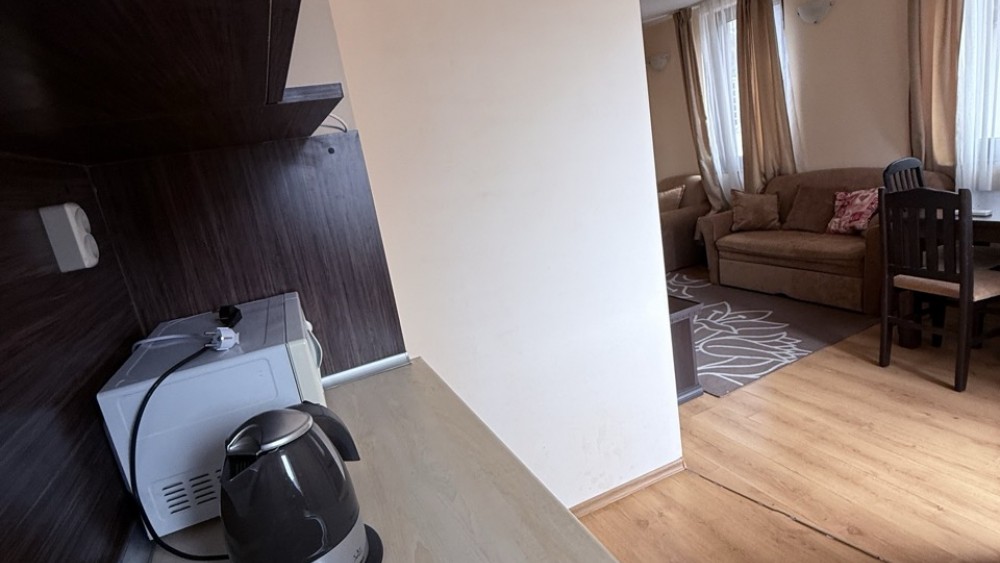Агенция за недвижими имоти „Hello Bulgaria“ с удоволствие ви представя уютен и напълно обзаведен тристаен апартамент в един от най-привлекателните комплекси в Банско.