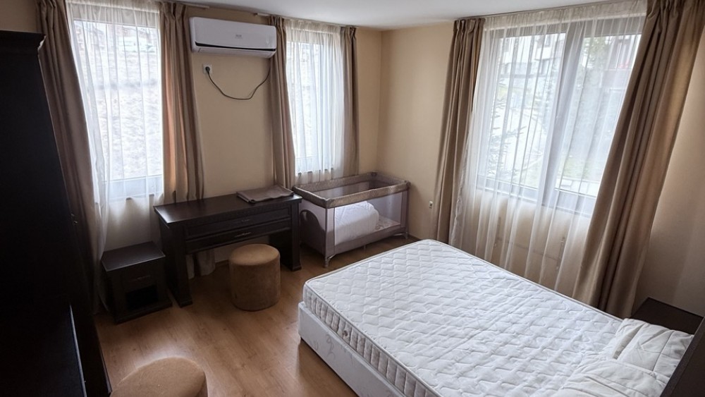 Имотът се предлага напълно обзаведен, с електроуреди и климатици във всяка стая — готов за нанасяне или отдаване под наем.