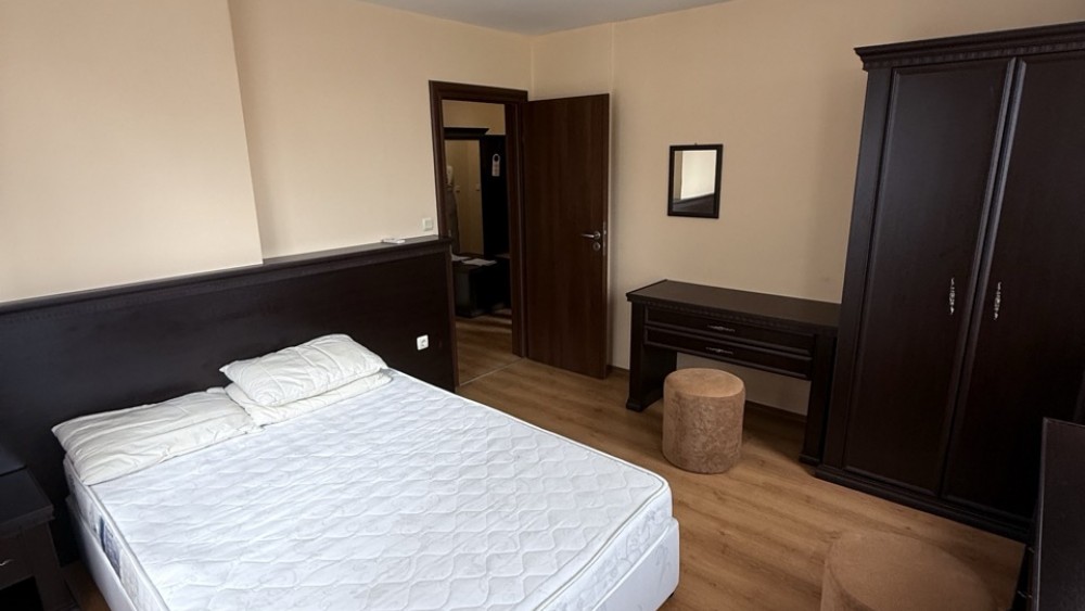 Спалнята е оборудвана с голямо легло, гардероб и нощни шкафчета.