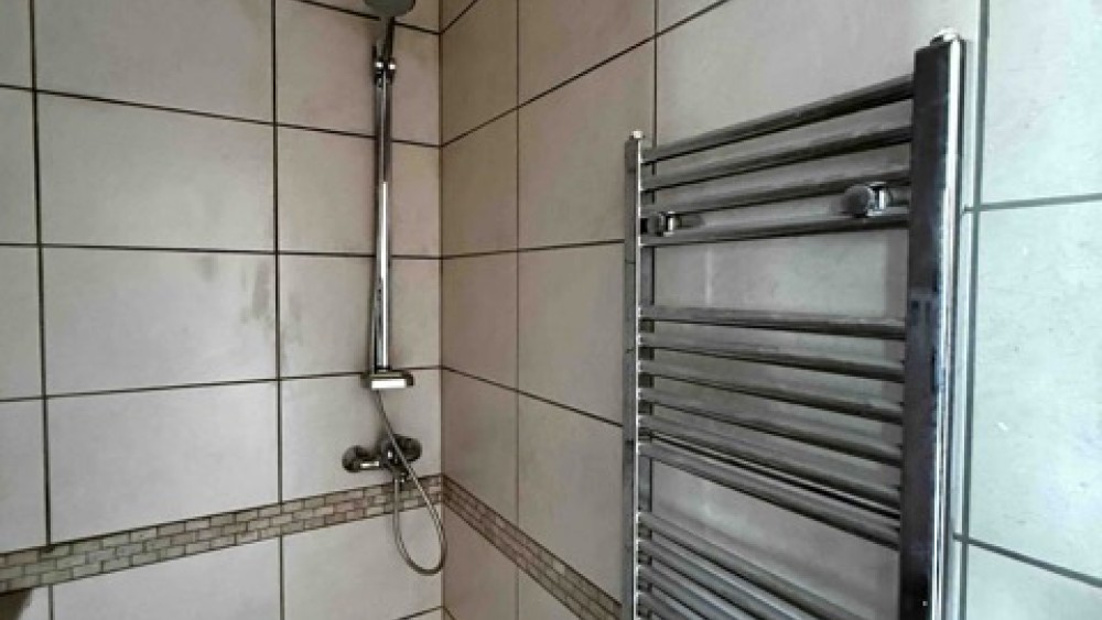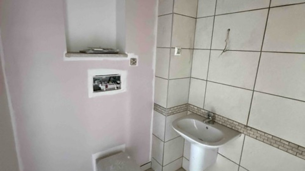 В апартамента има и баня с тоалетна с приблизителни размери 2,1 м × 1,7 м, където могат да бъдат разположени душ зона, мивка и тоалетна.