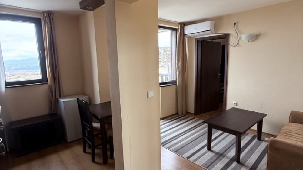 Агенция за недвижими имоти „Hello Bulgaria“ с удоволствие ви представя уютен и напълно обзаведен двустаен апартамент в един от най-привлекателните комплекси в Банско.