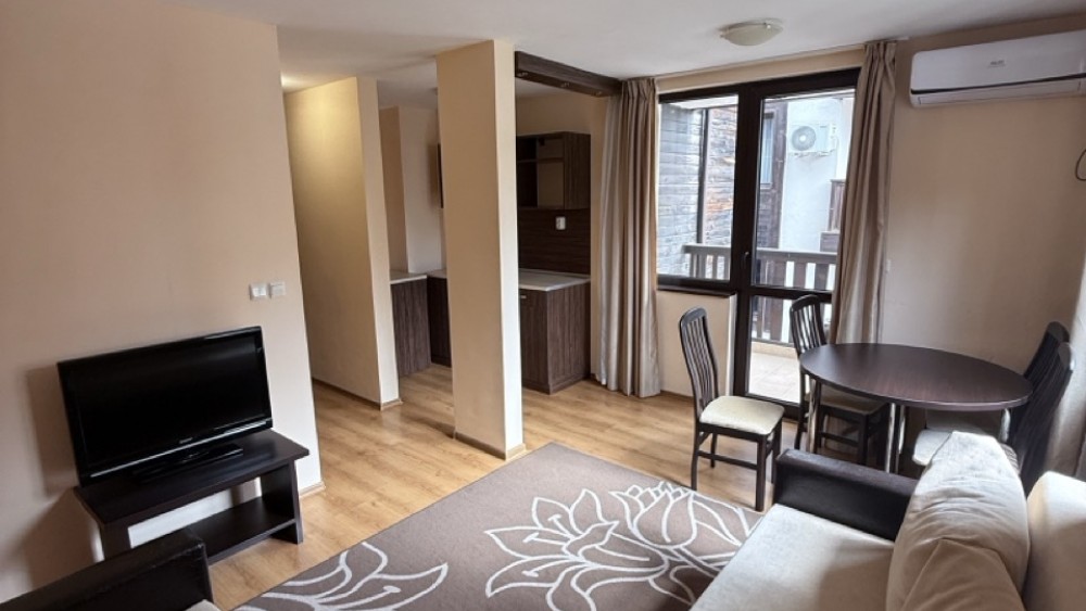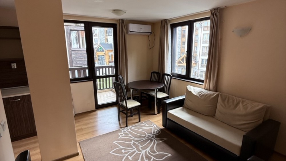 Агенция за недвижими имоти „Hello Bulgaria“ с удоволствие ви представя уютен и напълно обзаведен двустаен апартамент в един от най-привлекателните комплекси в Банско.