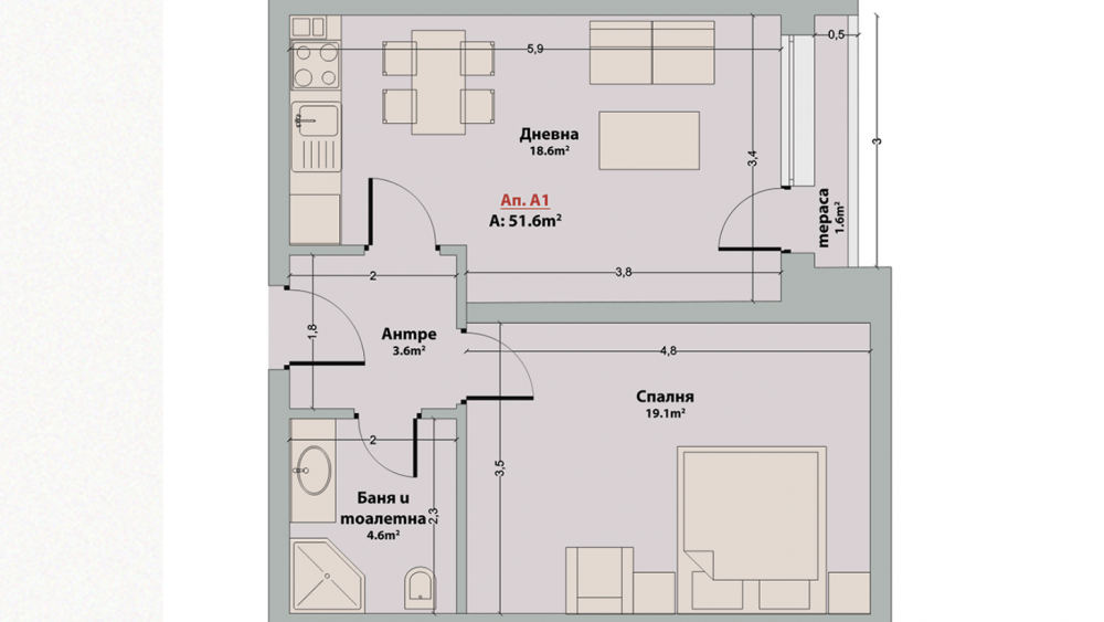 Апартаментът разполага с логично и комфортно зониране.