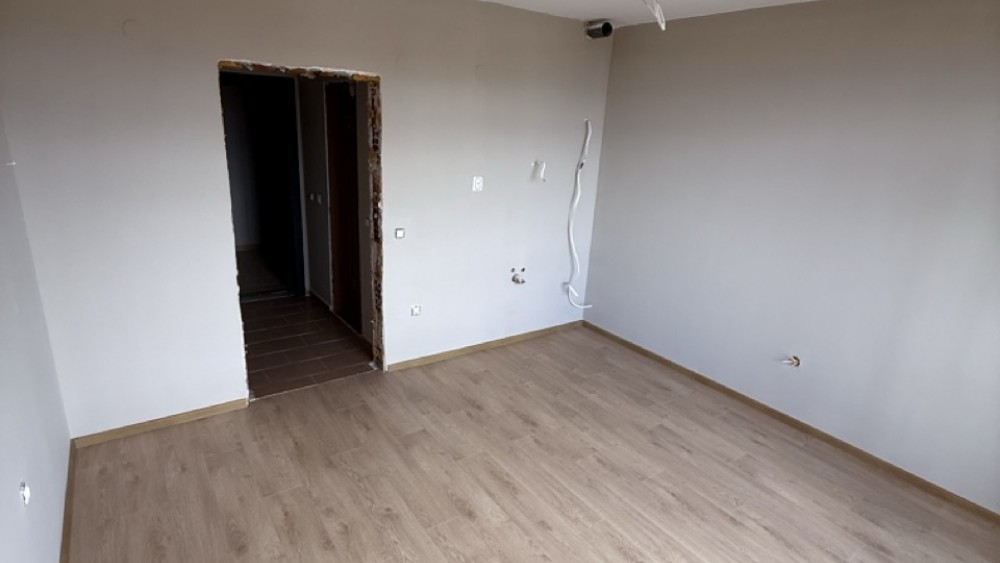 Студиото разполага с удобно отворено пространство, което обединява дневна зона, кухня и място за почивка. Помещението позволява комфортно разполагане на легло, трапезна зона и места за съхранение.