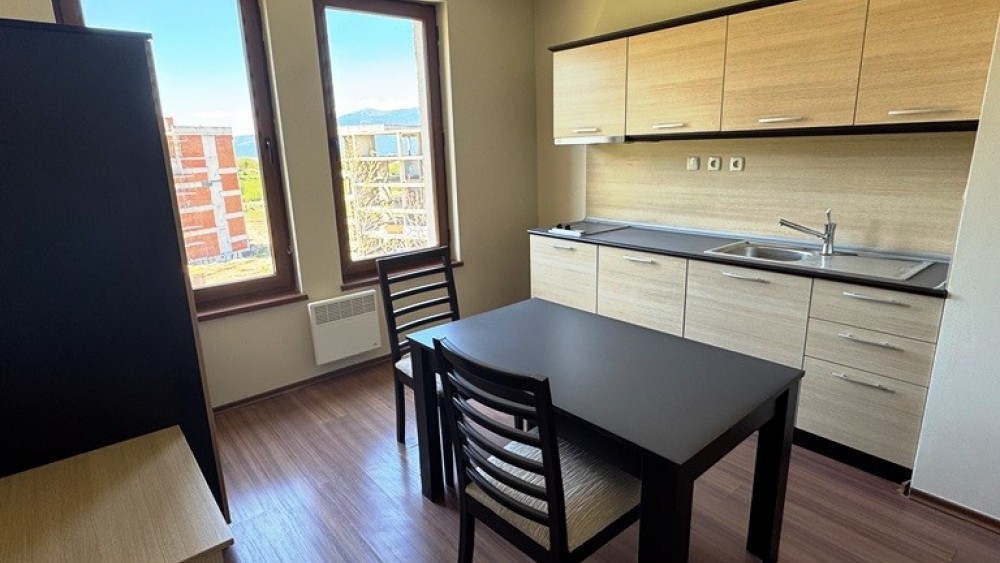 Предлага се напълно обзаведено студио с югозападно изложение и открита панорамна гледка към Пирин планина.